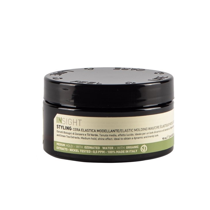 Insight Elastic Molding Şekillendirici Parlak Saçlar Wax, saçınıza kalıcı şekil verirken doğal parlaklık kazandırır. İçeriğindeki besleyici maddeler, saçı kurutmadan şekillendirmenize yardımcı olur. Saçın doğal hareketini koruyarak, esnek ve pürüzsüz bir görünüm sağlar. Yumuşak dokusu sayesinde saçta rahatça uygulanır ve gün boyu kalıcı tutuş sunar.